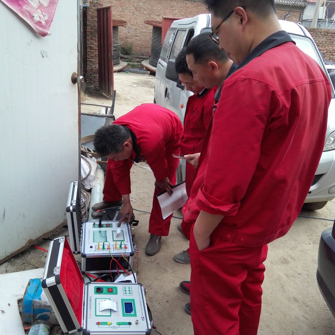 李工很快抵達現場,與客戶進行面對面的交流,了解客戶的需求和想法。然后開始講解設備,并認真講解怎樣安全操作設備。確保客戶明白了安全操作以后,李工帶領客戶一起做試驗——YTC850-135kVA/108kV變頻串聯諧振試驗裝置的測量,變頻串聯諧振由變頻電源、激勵變壓器(也可稱為勵磁變壓器)、電抗器和電容分壓器組成。被試品的電容與電抗器構成串聯諧振連接方式;分壓器并聯在被試品上,用于測量被試品上的諧振電壓,并作過壓保護信號;調頻功率輸出經激勵變壓器耦合給串聯諧振回路,提供串聯諧振的激勵功率。滿足多種試品的試驗要求,更方便現場使用,所以試驗進行的很順利。